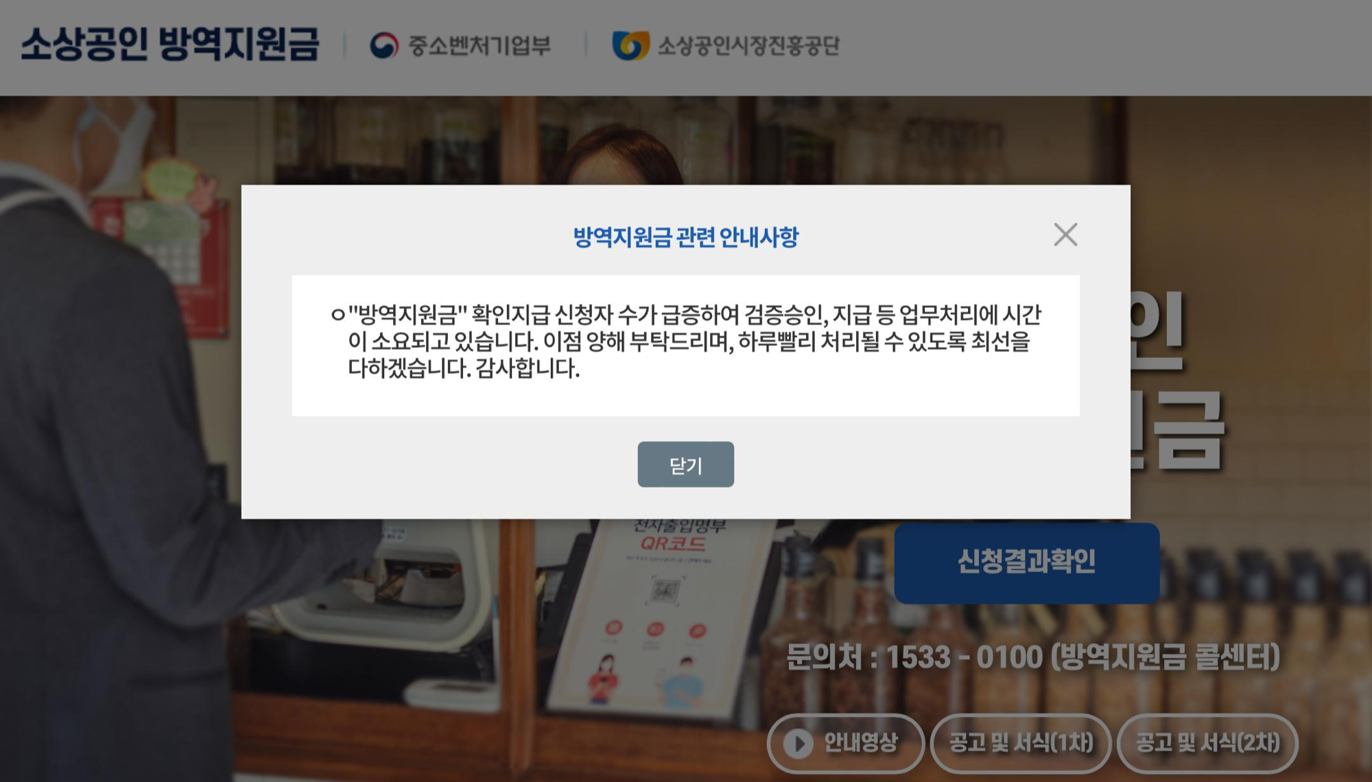 소상공인 방역지원금 2차 마감되었는데 1차도 심사 중?