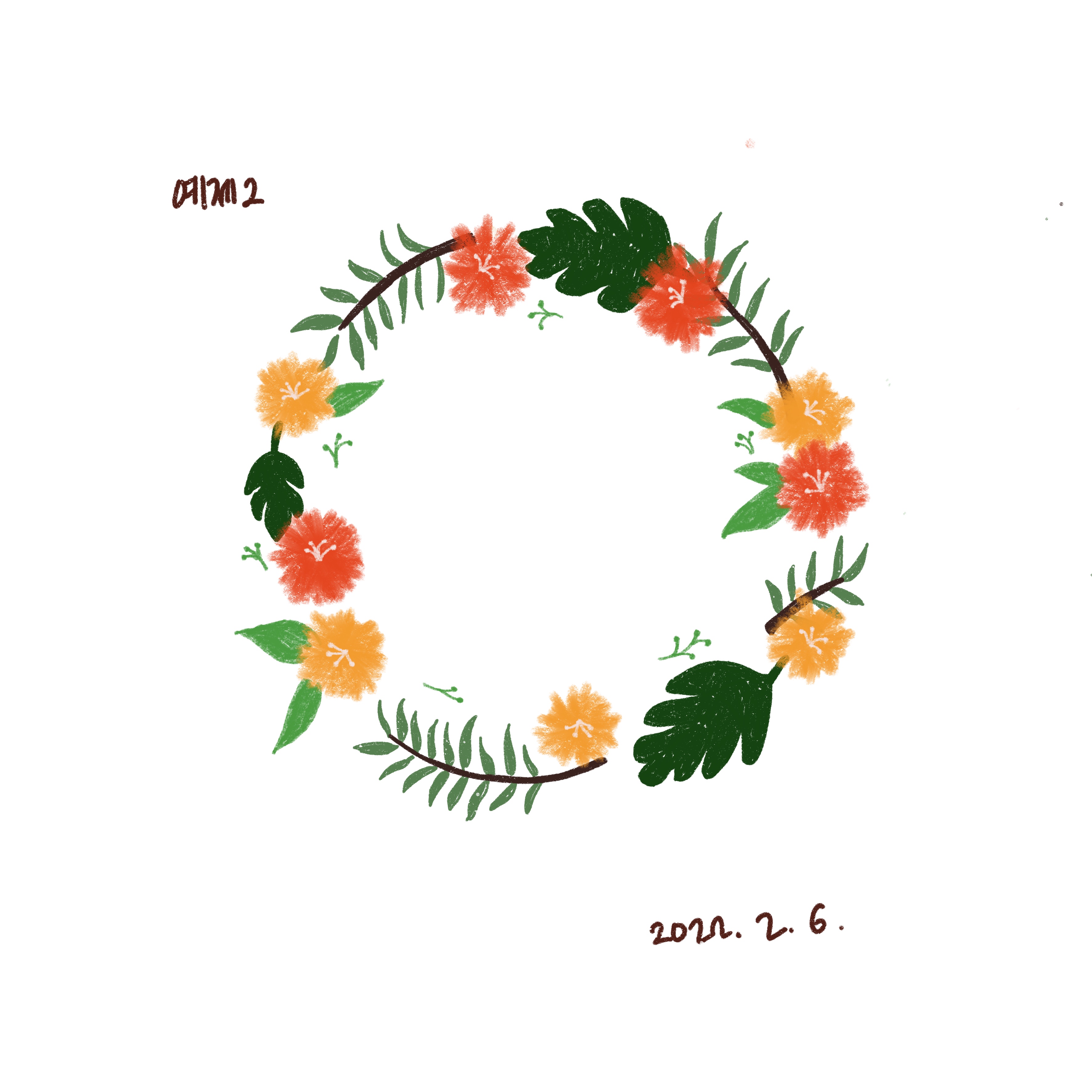 드로잉 자체가 서툰 초보에겐 리스 하나 그리는데 꽤 많은 시간이 듭니다. 꽃, 나뭇잎, 열매 등을 그리며 채워가는 데 나도 모르게 힐링이 되는 느낌이었답니다. 작가님의 예제를 보고 했건만 결과물은 사뭇 다르긴 했습니다.