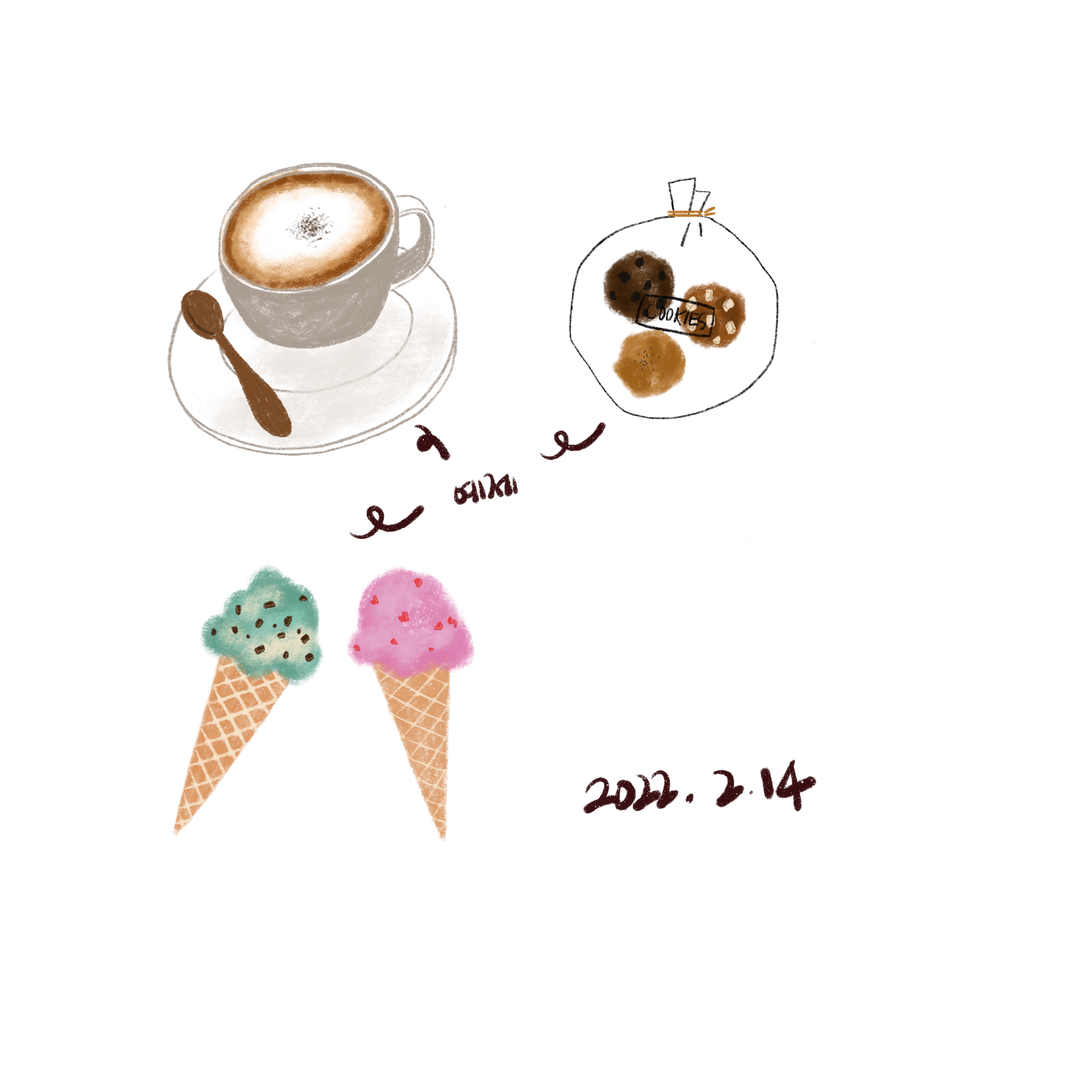 오늘은 딸기 아이스크림을 응용해서 추가로 그린 것 말고는 주구장창 책 속 예제만 따라 그렸습니다. 평소에 디저트를 즐기는 편이 아니라 더 그리고 싶은 게 마땅치 않기도 했습니다.